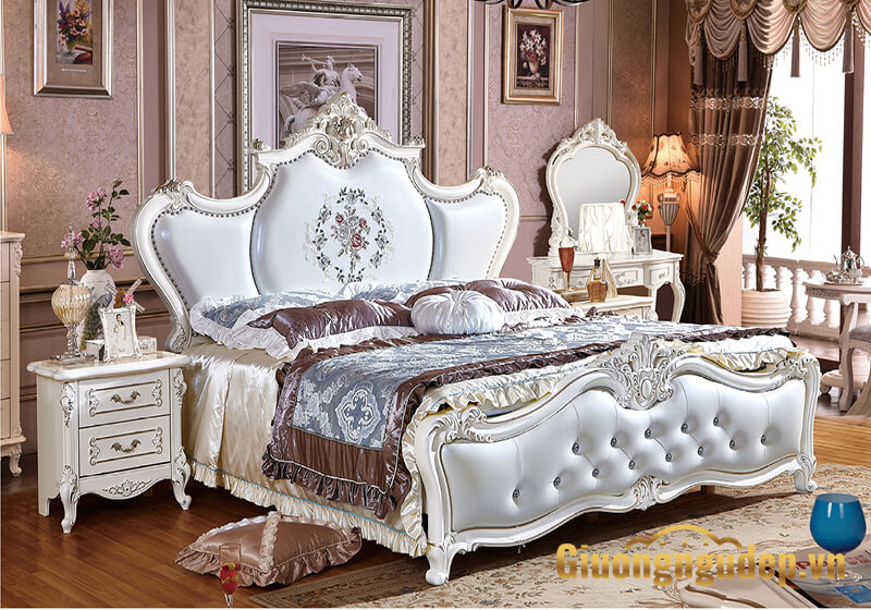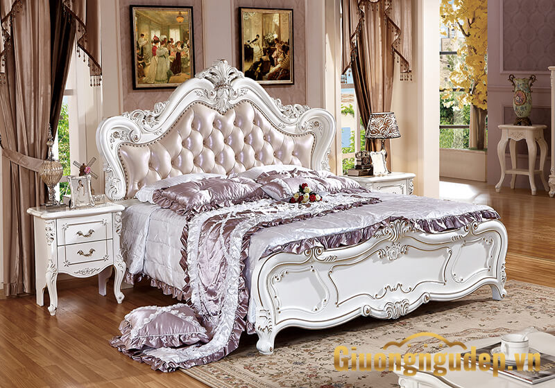 Sản phẩm là mẫu giường rất được ưa chuông ngay từ khi mới ra mắt. Chất liệu được đánh giá cao với nước sơn bóng ngọc trai chống trầy xước. Thiết kế đầu giường bọc da ếm ái và sang trọng. Toàn bộ chiếc giường màu trắng ngọc tạo độ sáng cho căn phòng ngủ. Đảm bảo mẫu giường hứa hẹn đem đến sự hài lòng đến độ gần như tuyệt đối cho gia chủ.